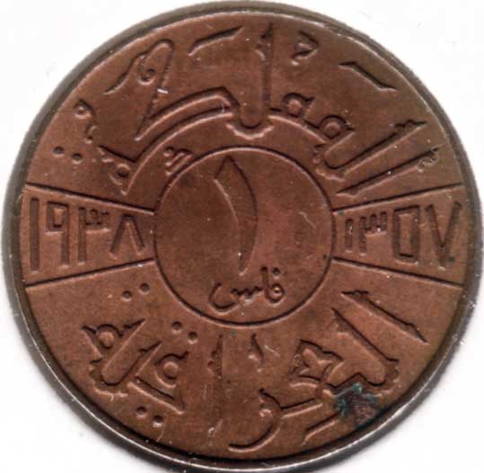 | 20 Fils (silver) | 1938-I | 106 | Ghazi I | F+ | 2.25sold |