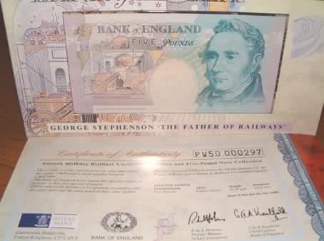 | 1998 Prince Charles 50th Birthday 5 Pound Banknote & 5 Pound Coin Special Issue £5 note with Cypher PW50 serial # 000297 out of only 1,000 printed a long with £5 coin. Issued by the Royal Mint & Bank of England for Prince Charles 50th Birthday These £5 notes only available in these sets not for general issue. In official pack with booklet & outer cover & Cert # PW50 000297 (only 1000 issued) |